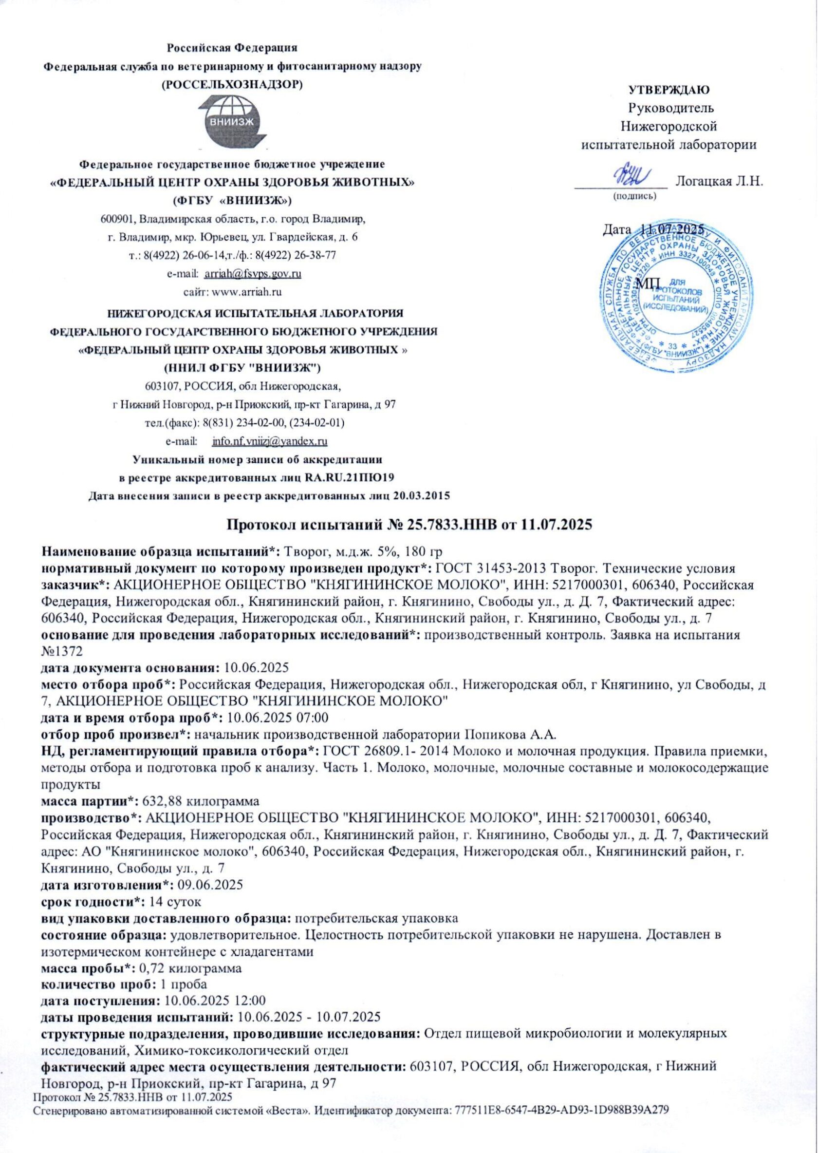 Протокол испытаний №25.7833.ННВ от 11.07.2025
