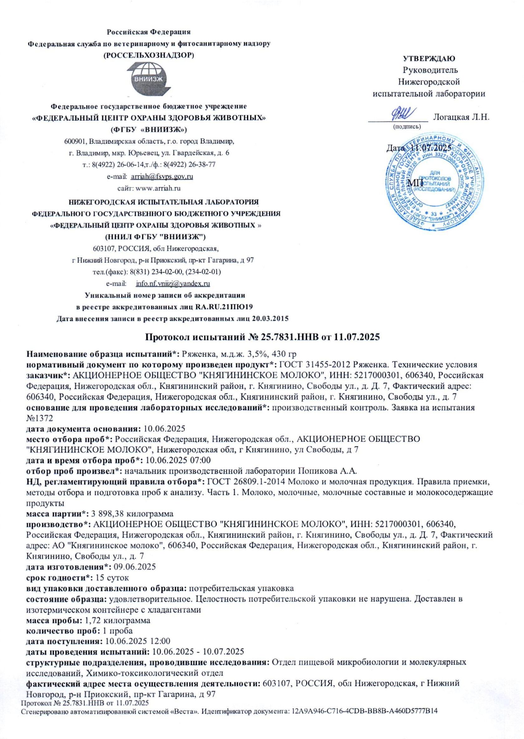 Протокол испытаний №25.7831.ННВ от 11.07.2025