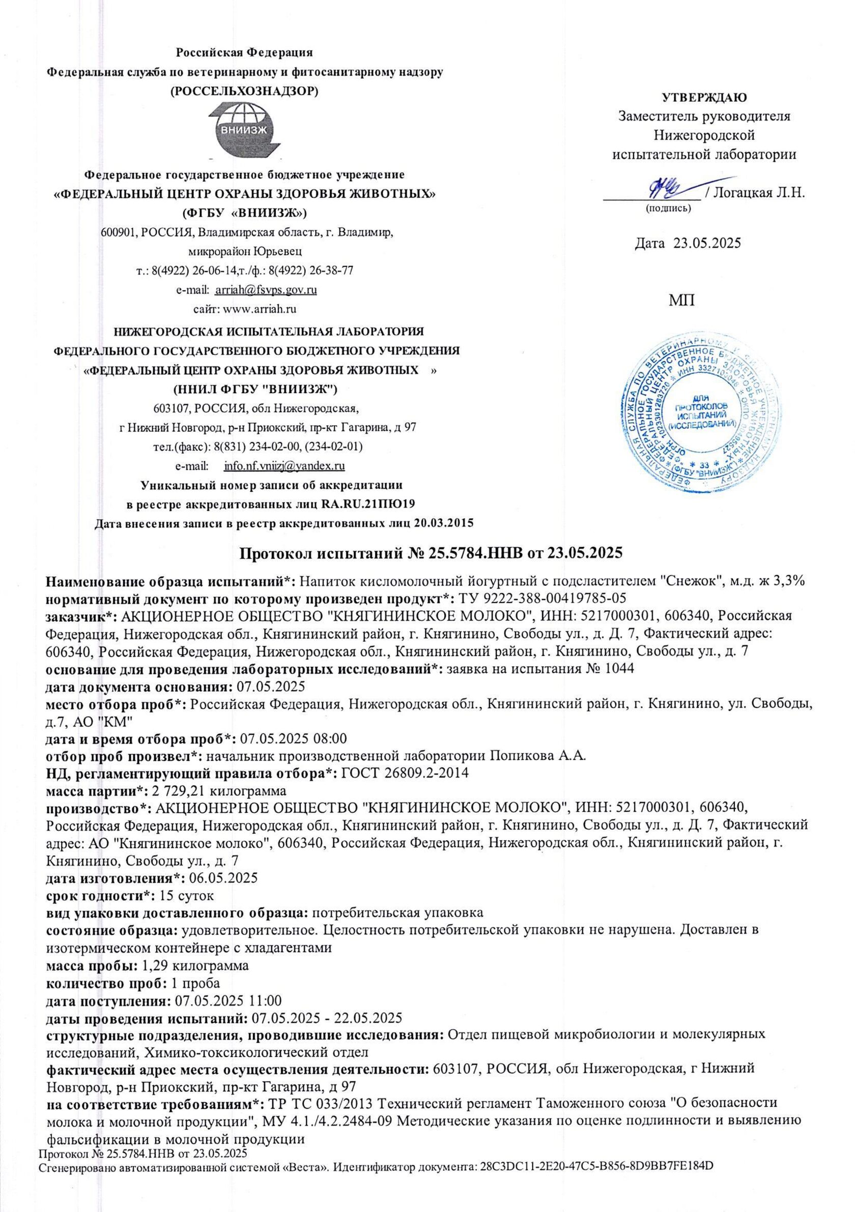 Протокол испытаний №25.5784.ННВ от 23.05.2025