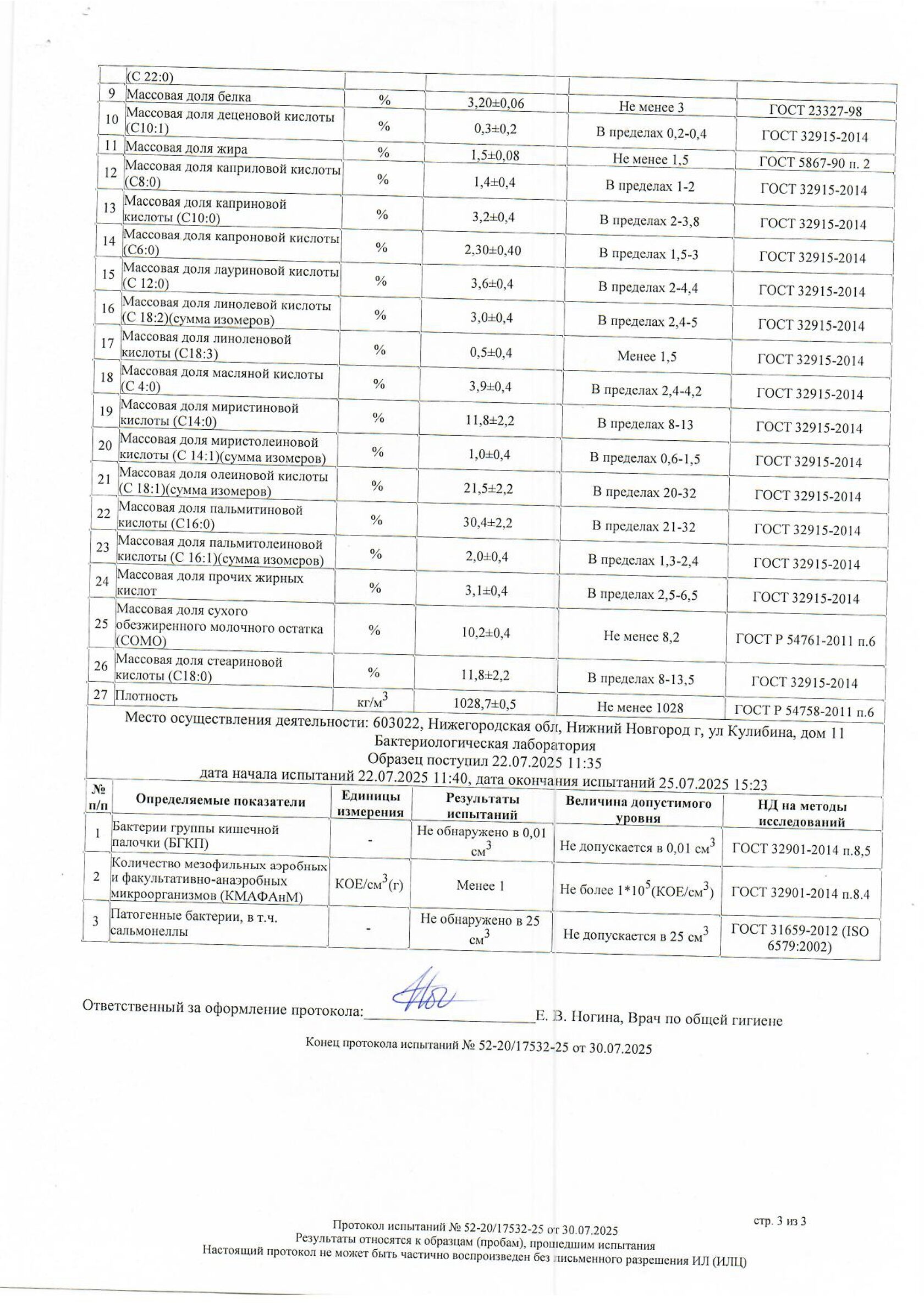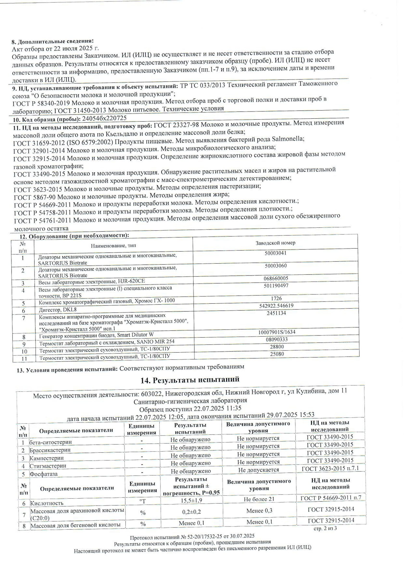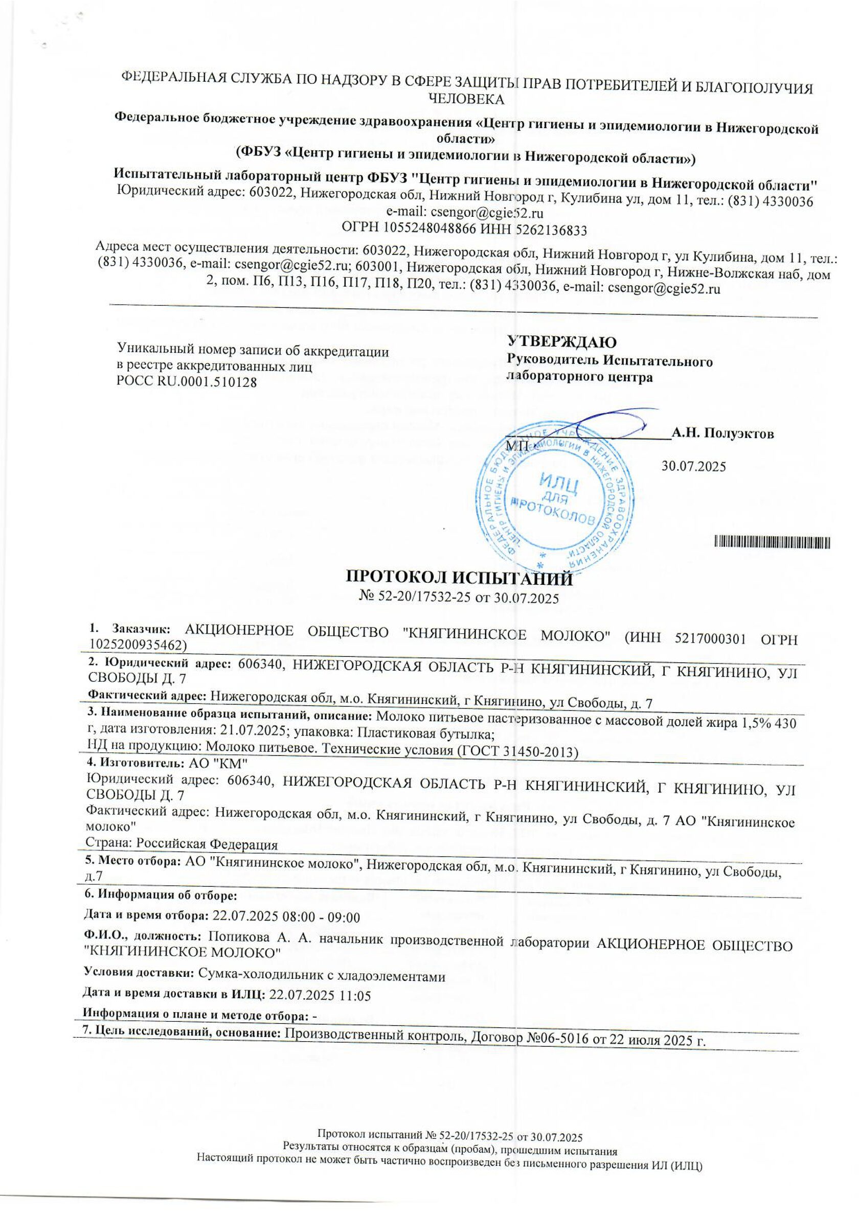 Протокол испытаний №52-20/17532-25 от 30.07.2025