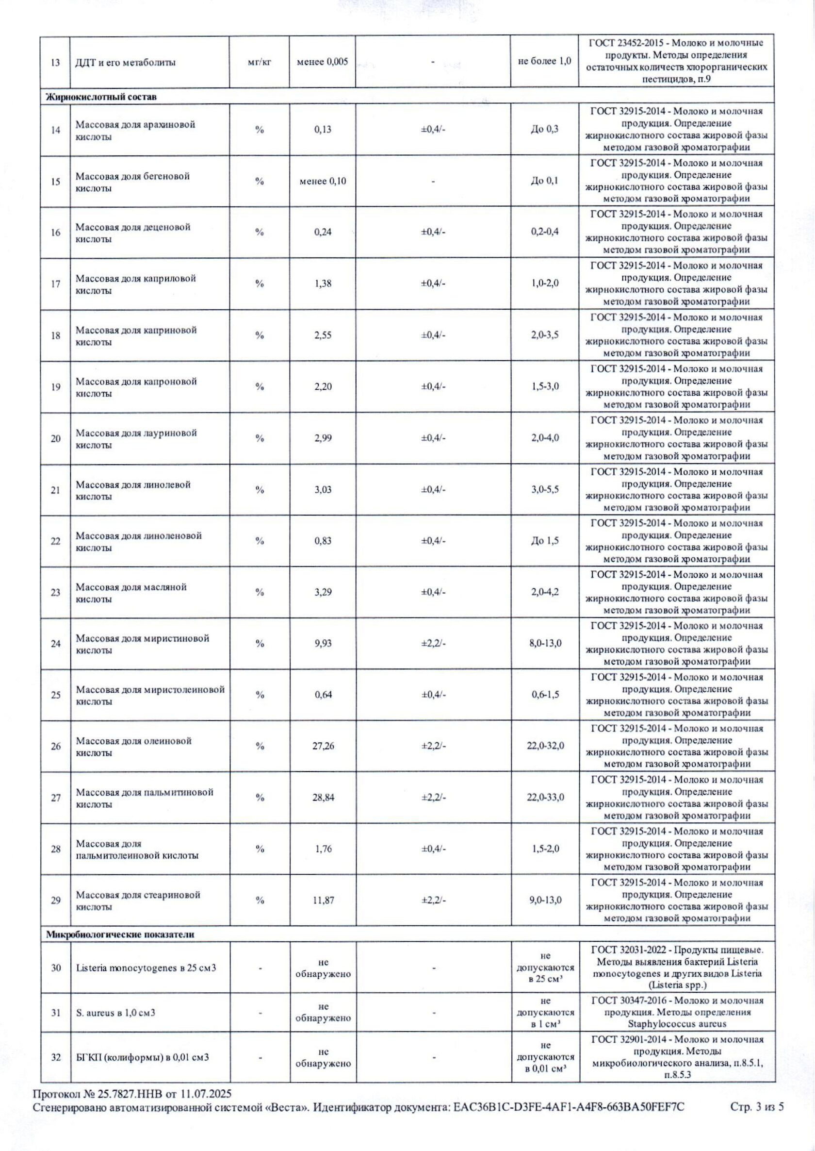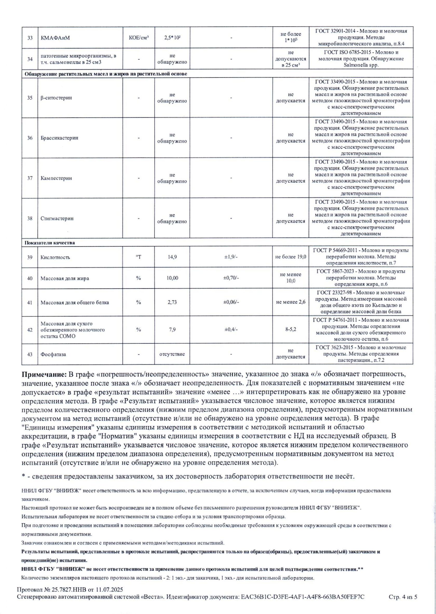 Протокол испытаний Сливки 10%