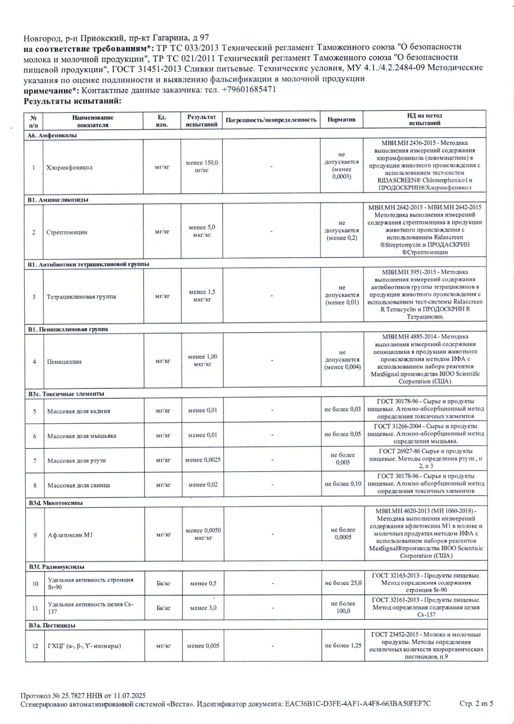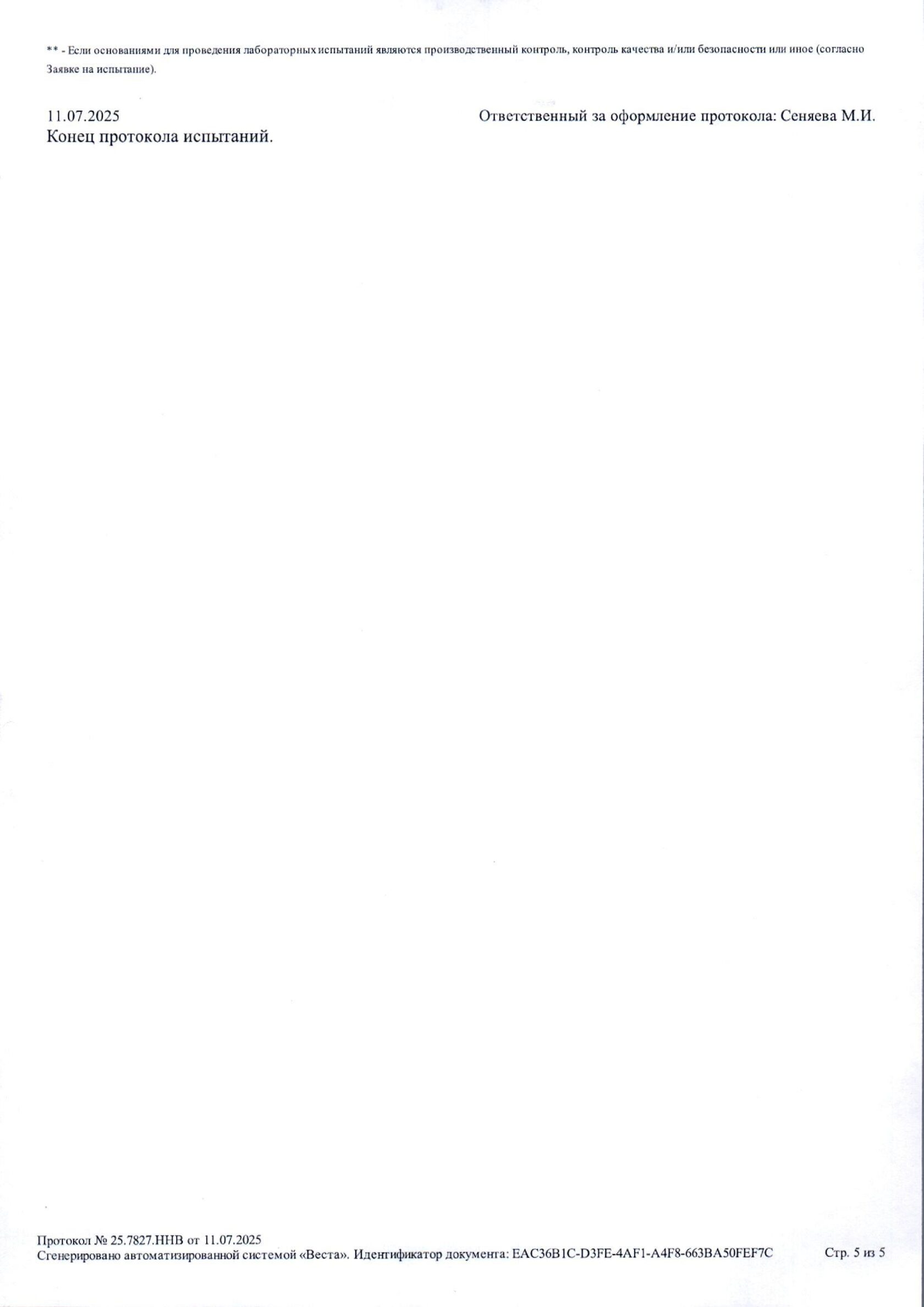 Протокол испытаний №25.7827.ННВ от 11.07.2025