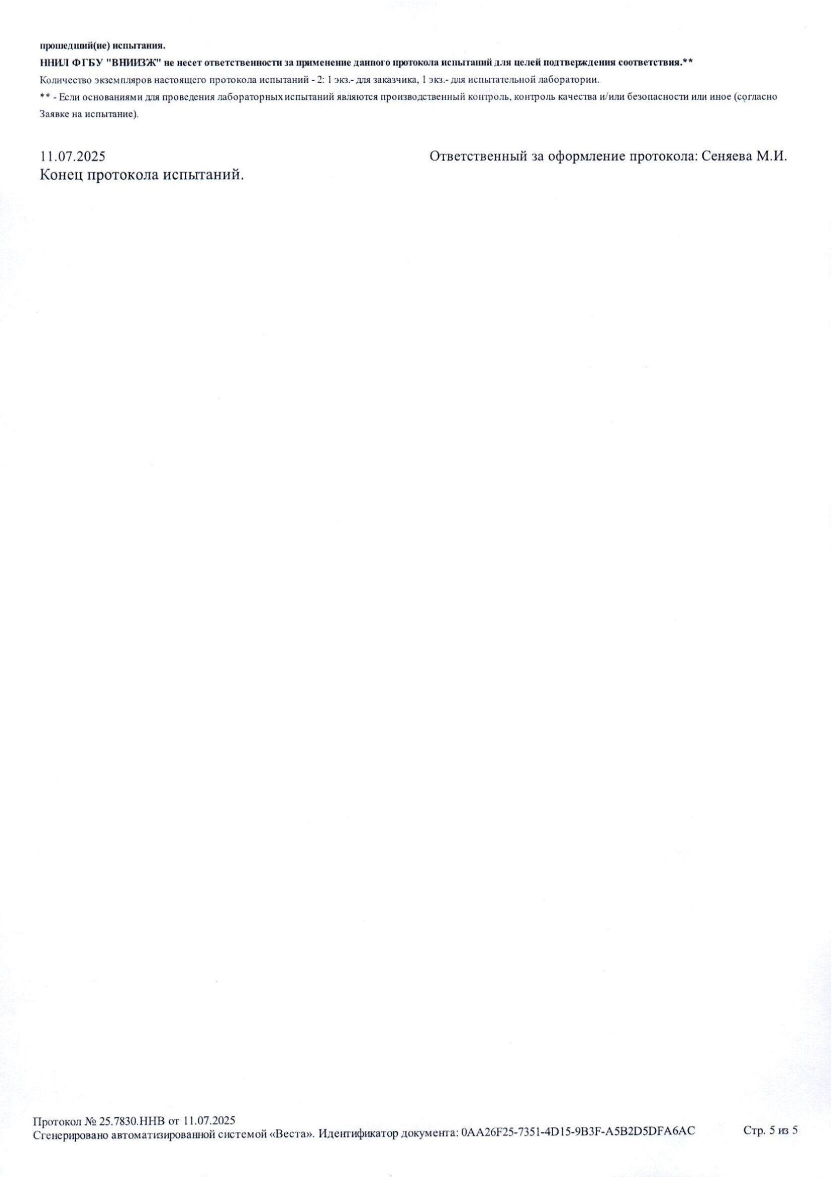 Протокол испытаний №25.7830.ННВ от 11.07.2025